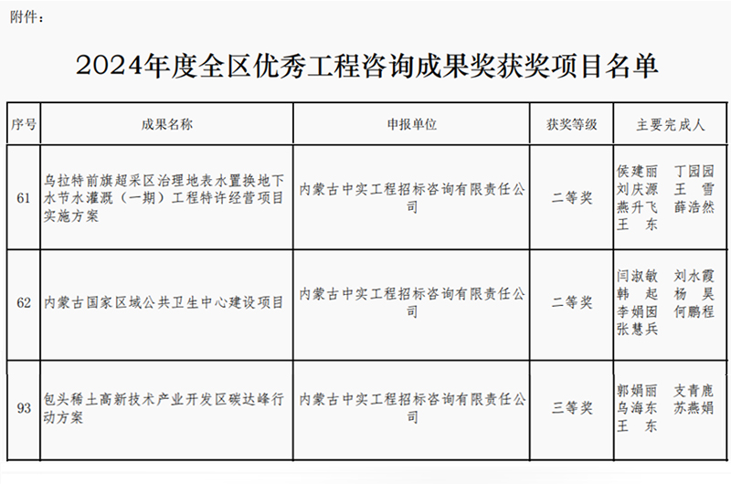 2025-04-1610046 次2025年4月16日,内蒙古工程咨询协会公布了2024年度优秀咨询成果奖获奖单位名单,我司取得两个二等奖和一个三等奖,我司专业能力和服务质量再次获得行业的认可。此次获奖,不仅体…